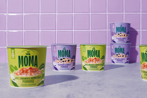 Enjoy easy vegan and low-maintenance porridge oats on the go with a porridge oats, pots & sachets subscription from MOMA. Enjoy the super tasty flavour combinations using real fruit pieces, including almond butter &Â salted caramel, cranberry & raisin, blueberry & vanilla and apple, cinnamon & brown sugar.Â