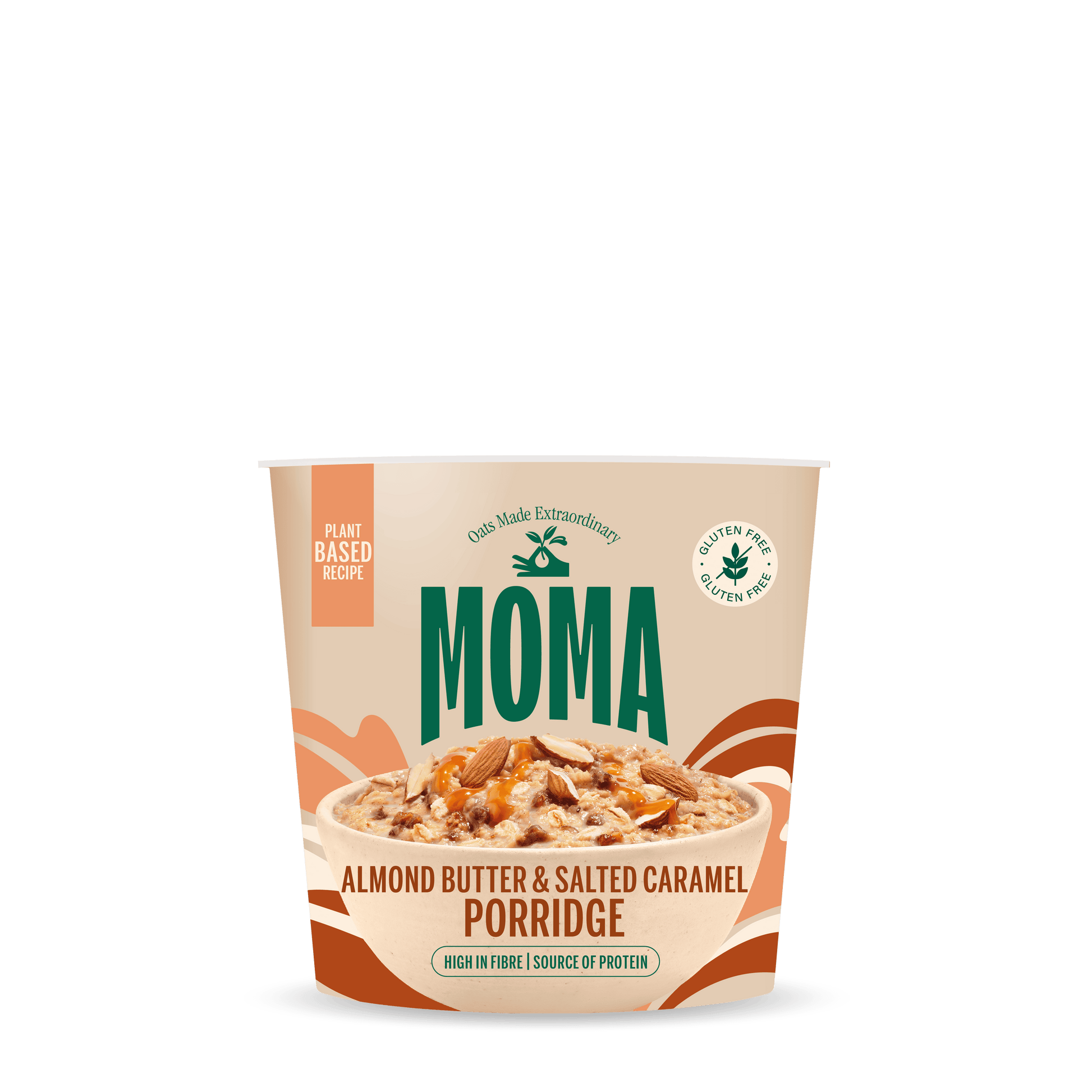 MOMA’s signature blend of gluten-free British jumbo oats and traditional porridge oats is fused with roasted ground almonds and roasted almond pieces for a deep nutty flavour, balanced with the sweetness of delicious dates for that delicious salted caramel taste. The contrast of sweet and savoury makes for the perfect hearty start to the day.